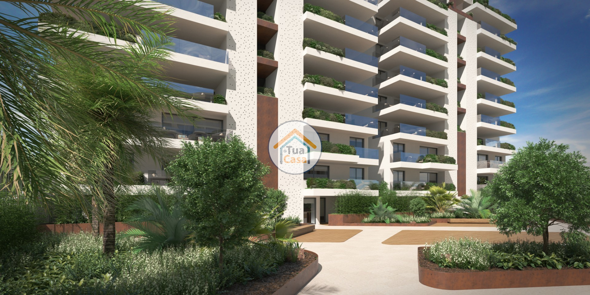 Porte-serviettes chauffants, terrasses et grands balcons en verre, cuisines entièrement équipées, fenêtres à aigus en aluminium, chauffage au sol, terrasse de jardin et piscine et jacuzzi.